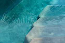 Beneath the large pool platform lie the cistern, mechanical rooms, the pool’s surge tank, and the maintenance staff quarters.