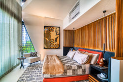 La nueva escalera, es una estructura de acero colgante, anclada entre los dos vitrales del techo, con huellas flotantes de parota sólida cardada. Siendo la conexión e integración entre la casa original y el nuevo pent-house, sus materiales tienen que dar ese mensaje.